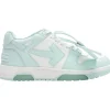 Signature Off-White design elements are present, including the industrial-inspired Helvetica text on the medial side, a distinctive orange tab, and the iconic zip-tie, this time in a hue that complements the sneaker’s overall color scheme. The deconstructed aesthetic is further enhanced by the exposed foam at the tongue and collar, adding an element of raw, unfinished elegance.