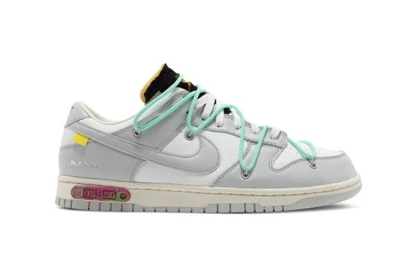 The Off-White x Nike Dunk Low ‘Lot 04 of 50’ is a key highlight in the groundbreaking “The 50” collection, which represents Virgil Abloh’s innovative exploration of the Dunk Low silhouette across fifty unique variations. Each version within this series introduces its own distinct identity through subtle shifts in palette, texture, and detailing, making every lot a coveted piece for collectors and sneaker enthusiasts. ‘Lot 04 of 50’ in particular, embodies Abloh’s signature blend of conceptual design and streetwear functionality, offering a fresh take on the iconic sneaker.
